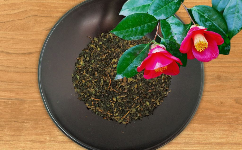 ツバキ葉と組み合わされるのは長崎県産の緑茶です。
